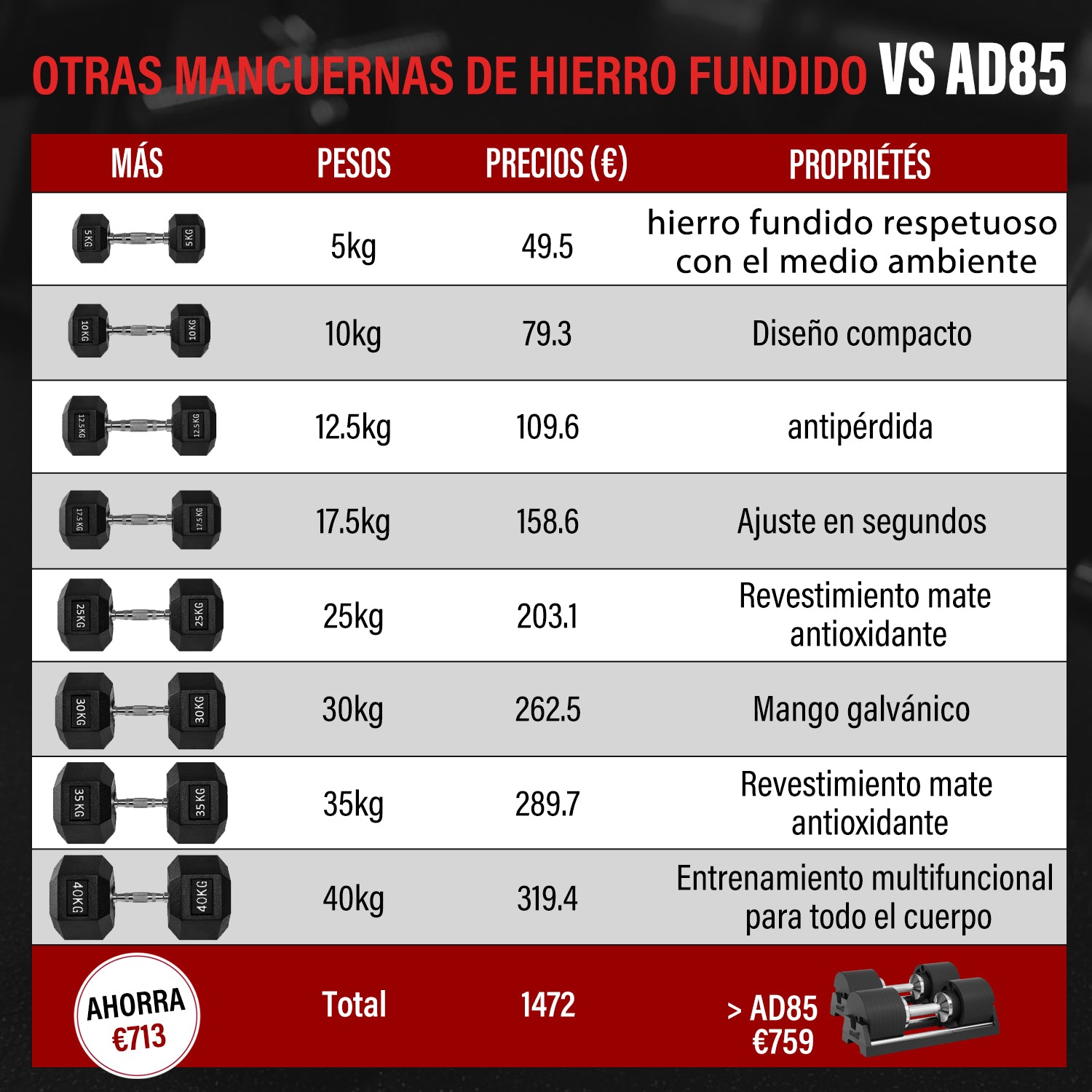 El eje interior del juego de mancuernas AD85 está hecho de aluminio, por lo que es de metal.